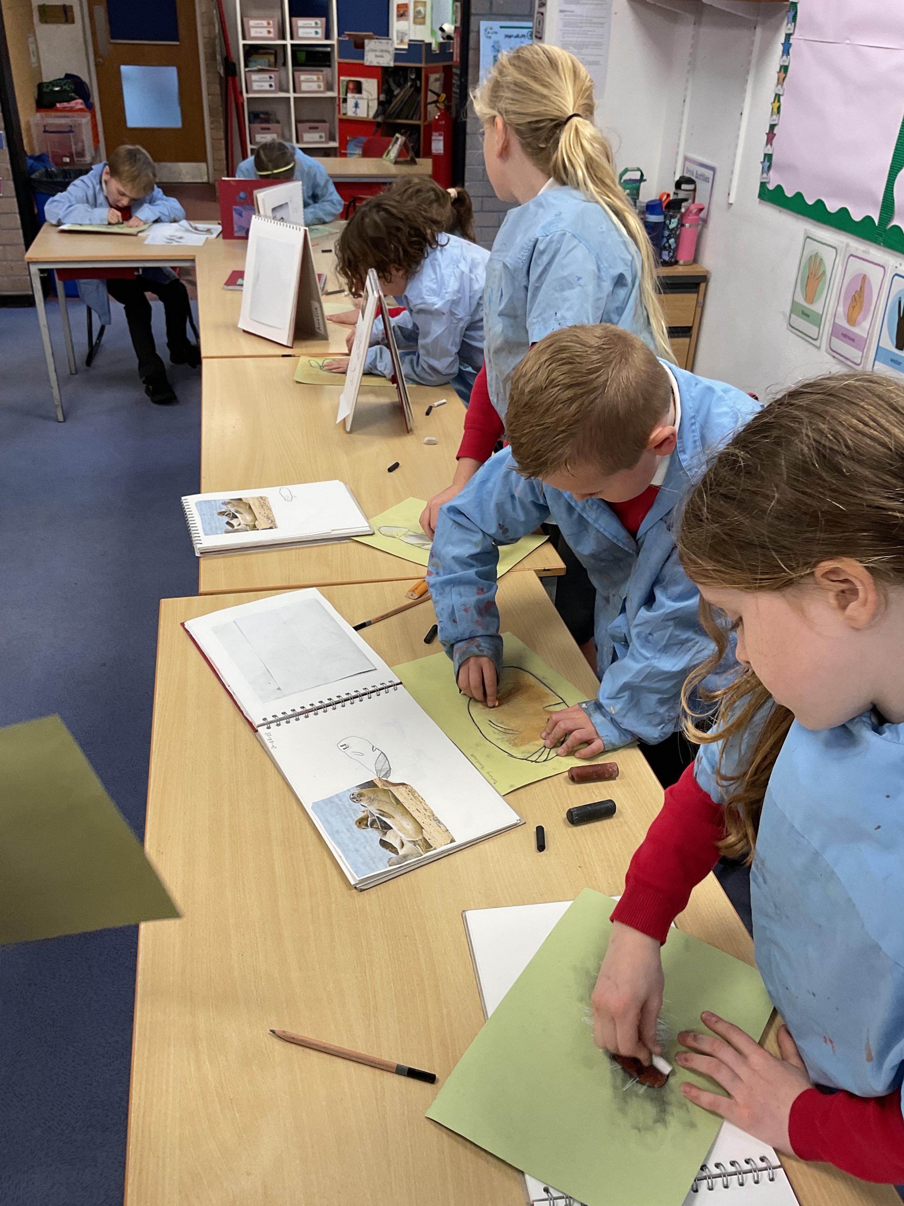 with Y4 producing some stunning abstracts of Winter birch trees, using watercolours