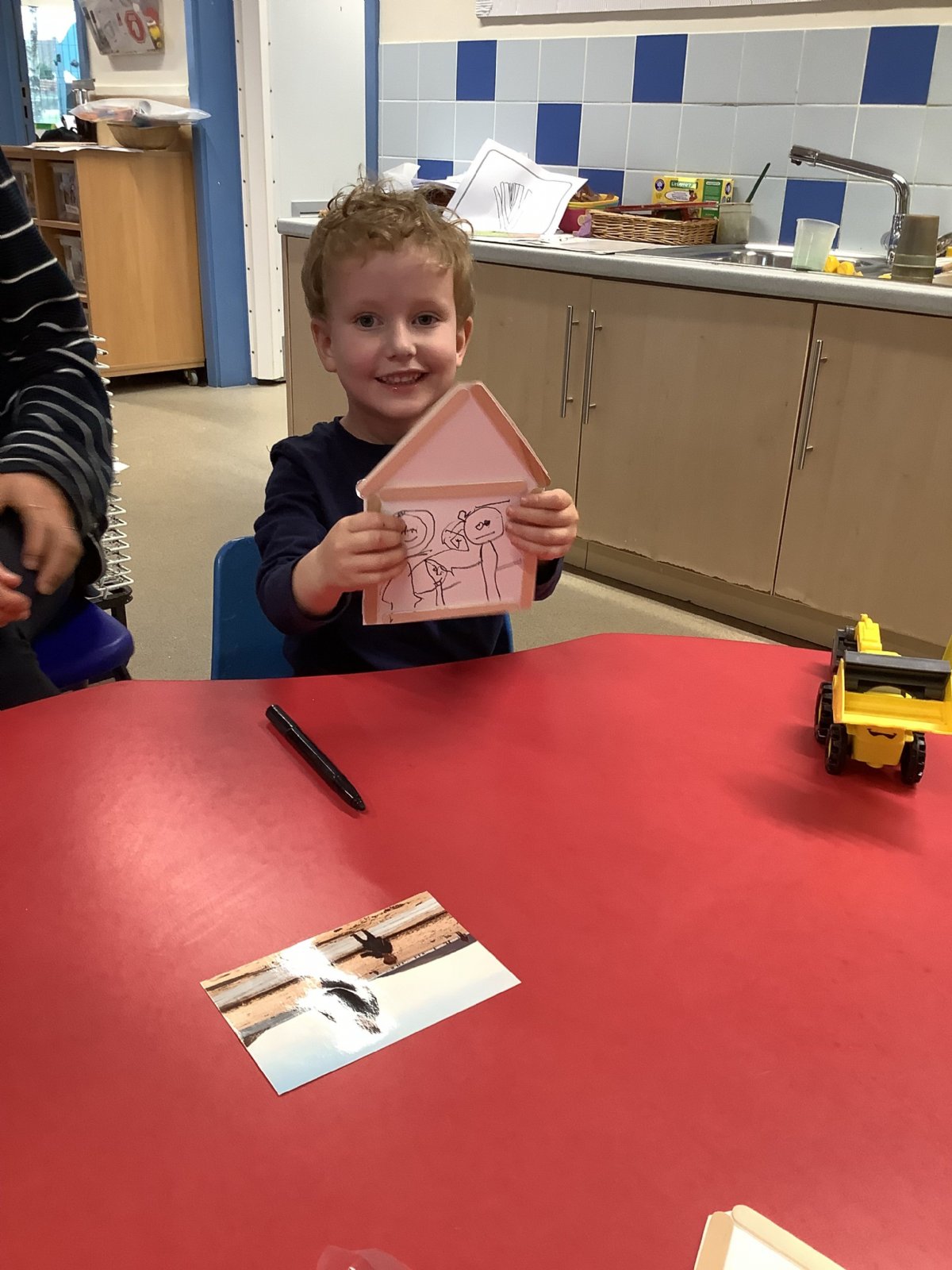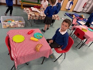 We have also been busy in class. Leo is showing one less from 5 as he joins in with the '5 Little Monkey's rhyme' (one of his favourites).