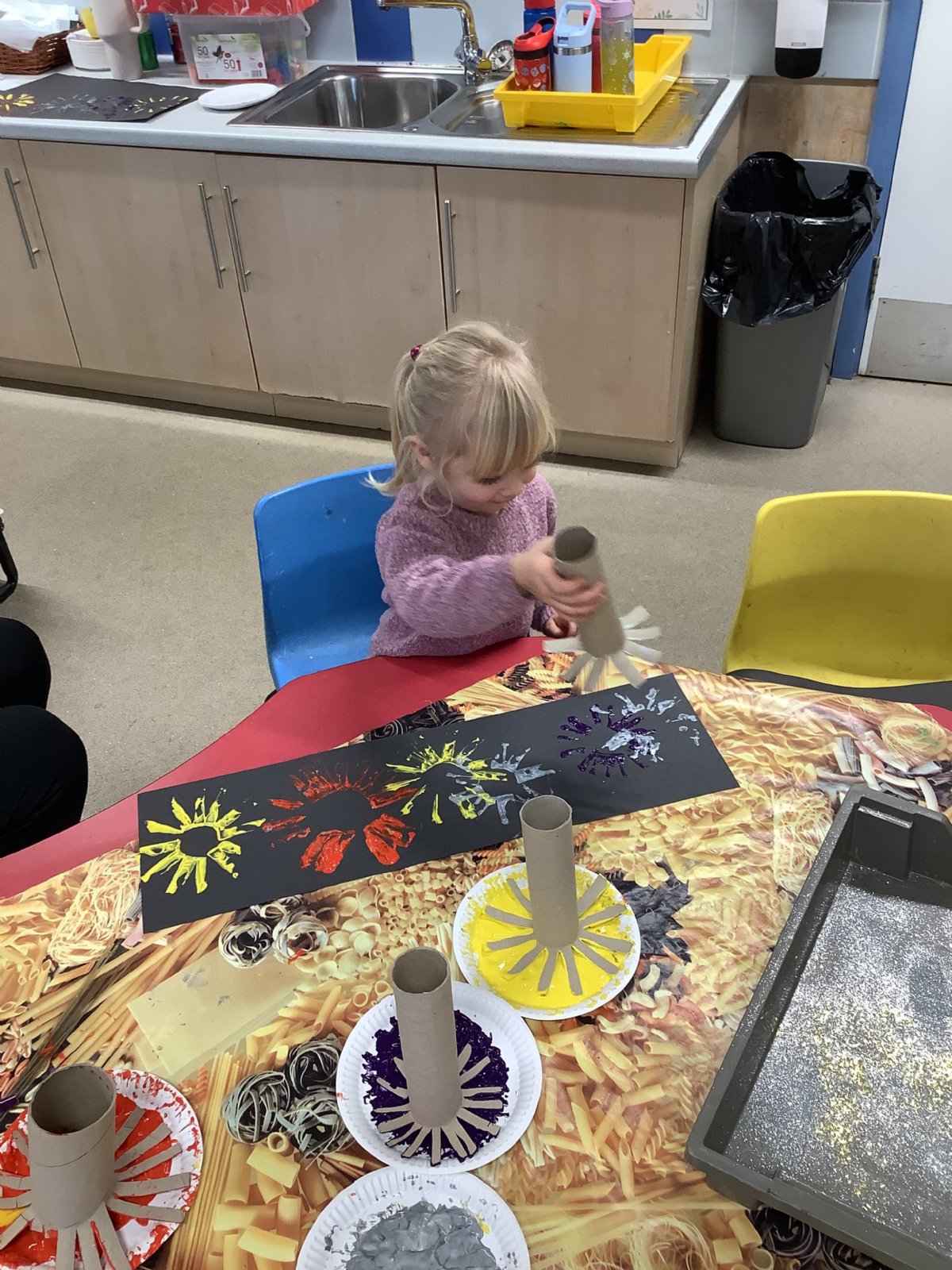 and we made our own explosive colourful artwork. We also enjoyed making chocolate breadstick sparklers!