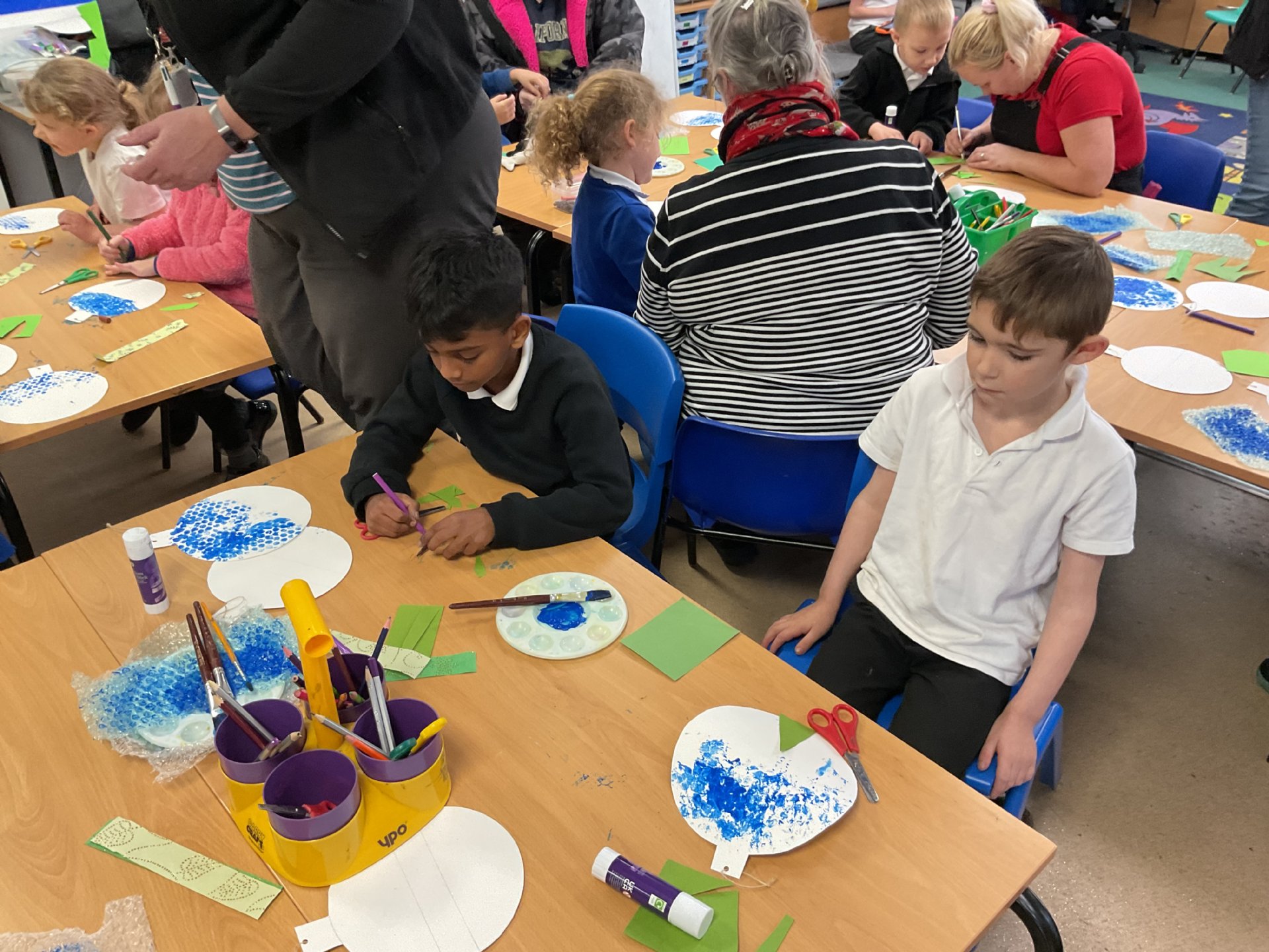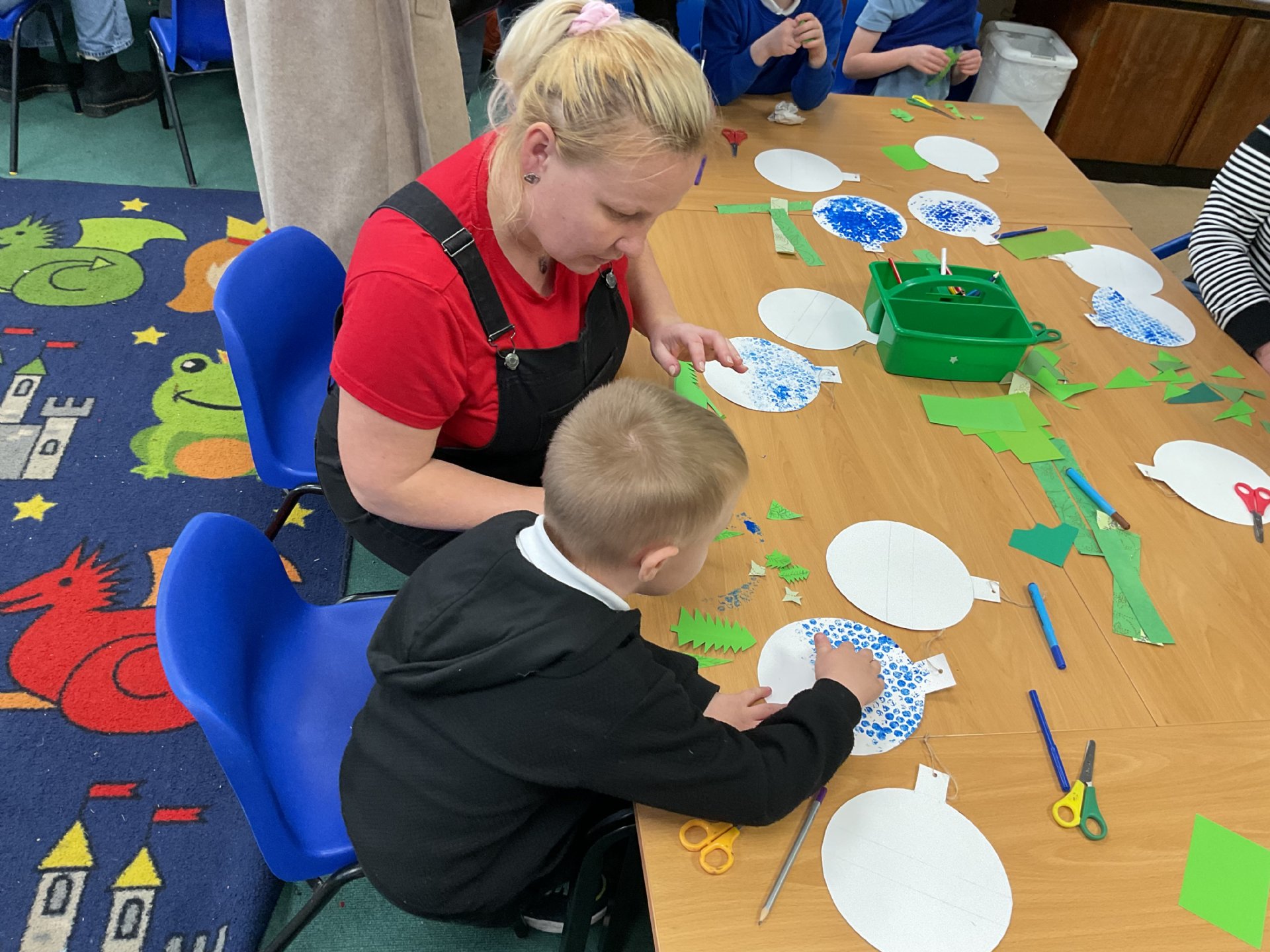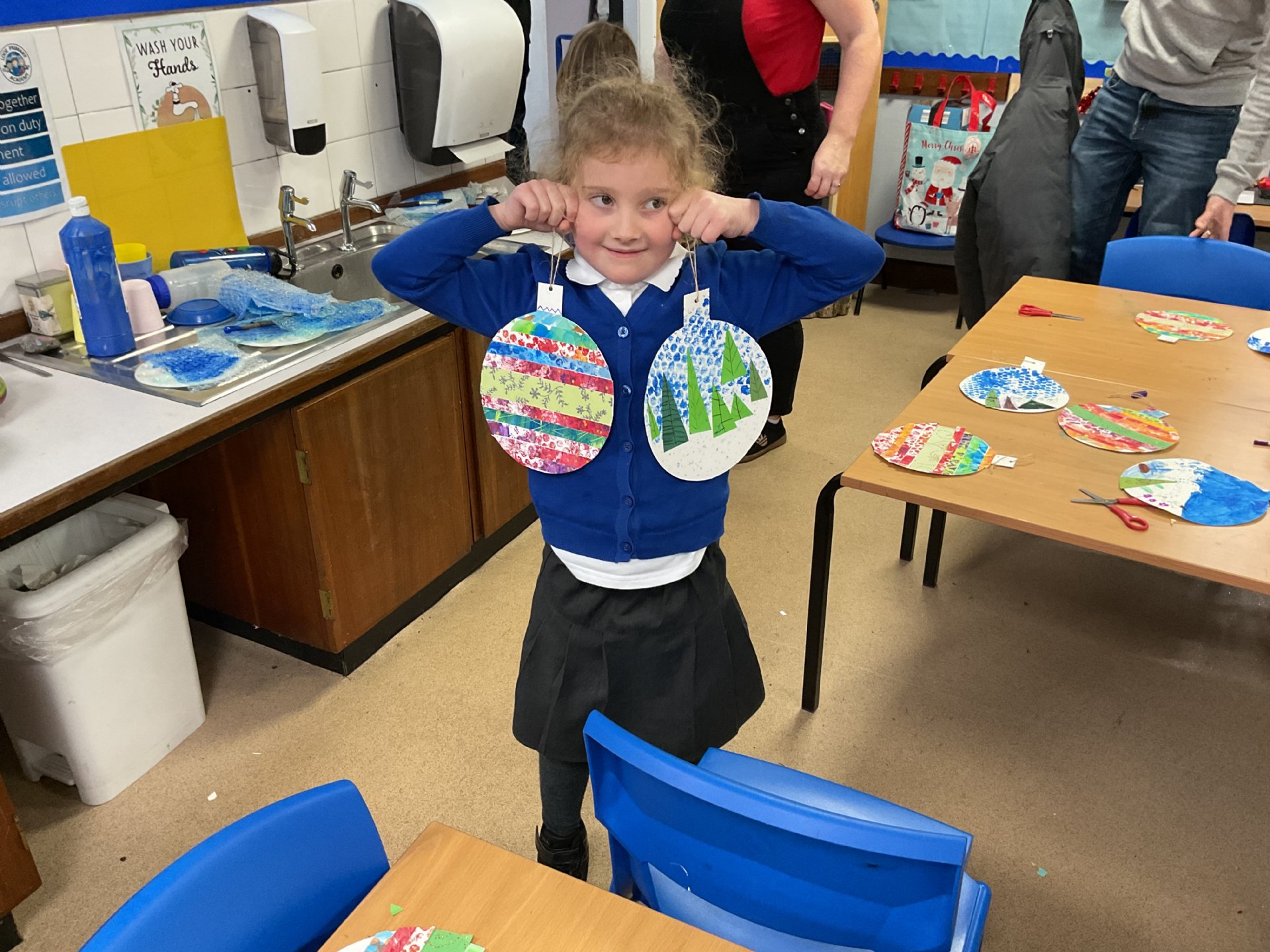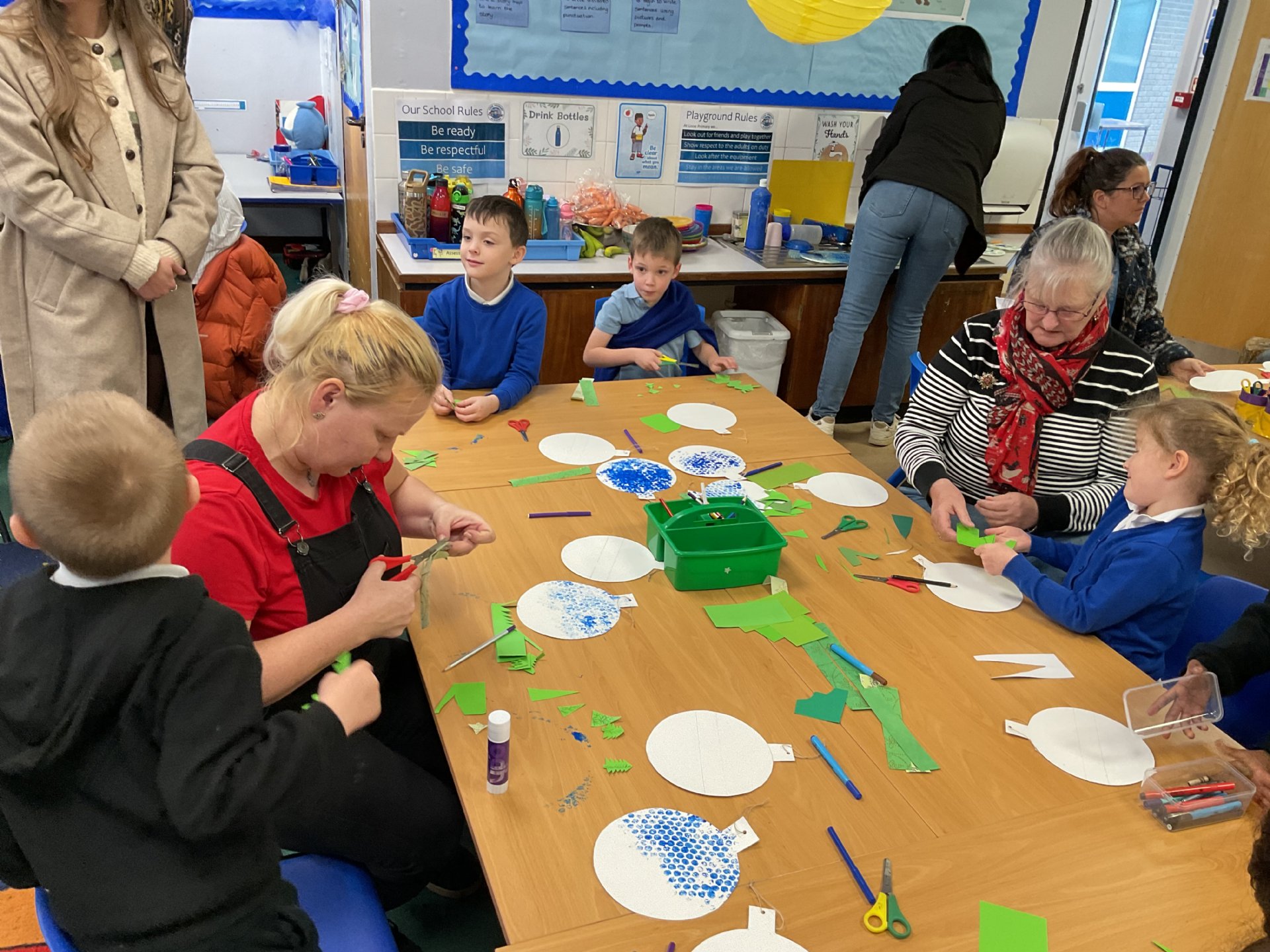 On Wednesday afternoon, we had an amazing craft afternoon with Sue Bennett and our families. We made lovely paper baubles that will look amazing hung on our Christmas Trees.
